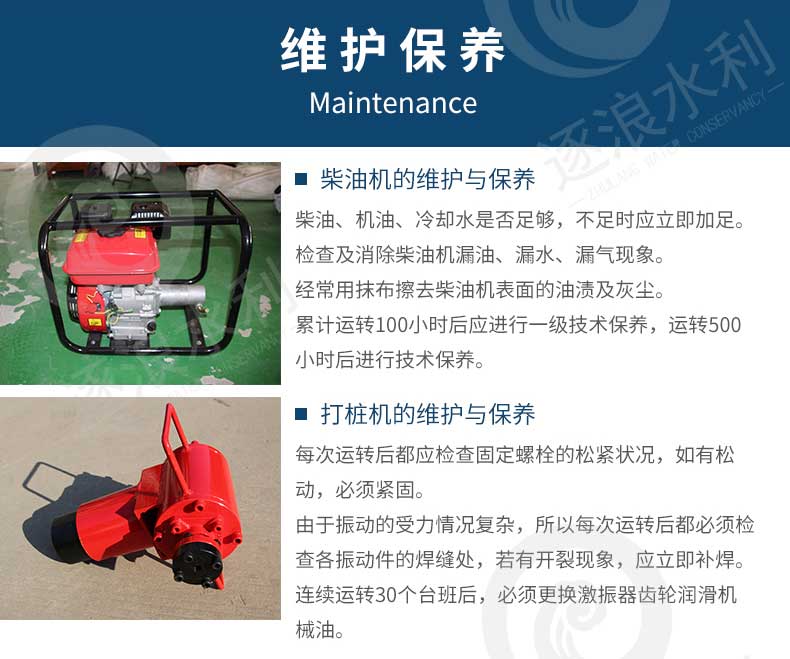 防汛防洪打樁機(jī)是根據(jù)水利建設(shè)的實(shí)際需求,研制的一種新型水利建設(shè)專用機(jī)械,它可以廣泛用于防汛抗洪搶險(xiǎn)、汛期前后堤岸、池塘維護(hù)、圍欄加固作業(yè)的打樁作業(yè),防汛搶險(xiǎn)打樁機(jī)以壓縮空氣為動(dòng)力源,膨脹原理,使火塞打擊錘,在運(yùn)動(dòng)中產(chǎn)生巨大的沖擊力來(lái)撞擊木樁上端,從而達(dá)到樁進(jìn)入深層地面為目的。